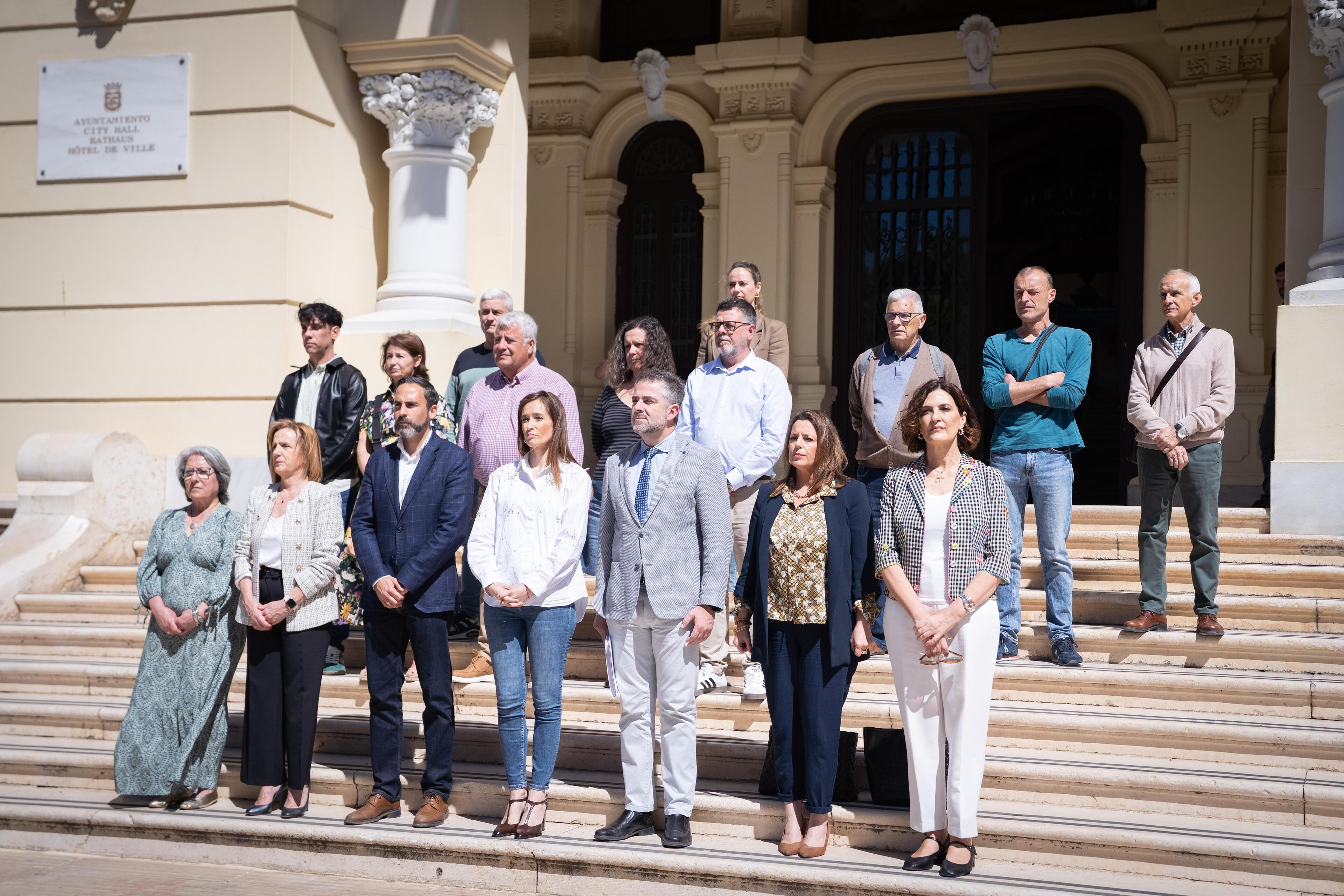 La Corporación ha mantenido este mediodía en las escaleras exteriores del Ayuntamiento un minuto de