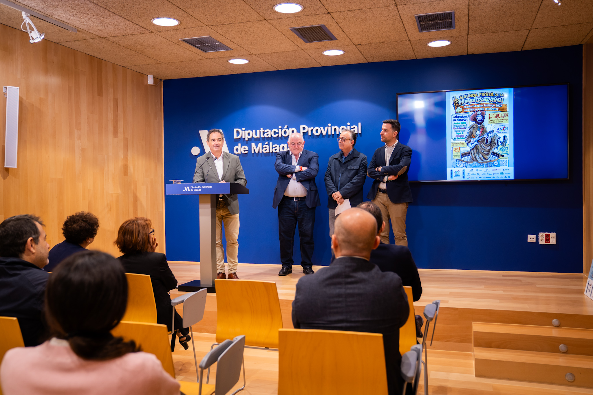 El concejal delegado de Derechos Sociales, FranciscoCantos, junto al vicepresidente segundo de la Diputación, Manuel Marmolejo, y el presidente de la Asociación de Voluntarios de Oncología Infantil (AVOI), Juan Carmona, ha participado en la presentación de la II Fiesta de la Primavera AVOI, que se celebrará el 1 de mayo a partir de las 13:00 horas en la plaza de toros de La Malagueta, con la colaboración del Ayuntamiento, en la que habrá música en directo, actividades infantiles y puestos de comida y bebida. En esta edición, los fondos se destinarán a una iniciativa para que menores oncológicos realicen el Camino de Santiago. El Ayuntamiento de Málaga trabaja de forma continuada en este ámbito a través de la Agrupación de Desarrollo Unidos Contra el Cáncer, de la que forma parte junto a AVOI y otras organizaciones como Fundación Cudeca, Fundación Andrés Olivares, Fundación Infantil Ronald McDonald, Fundación Malagueña de Asistencia a Enfermos de Cáncer (FMAEC), Fundación Cesare Scariolo, Asociación para la Atención a las Mujeres Mastectomizadas u Operadas de Cáncer de Mama (ASAMMA) y la Asociación Española contra el Cáncer(AECC).