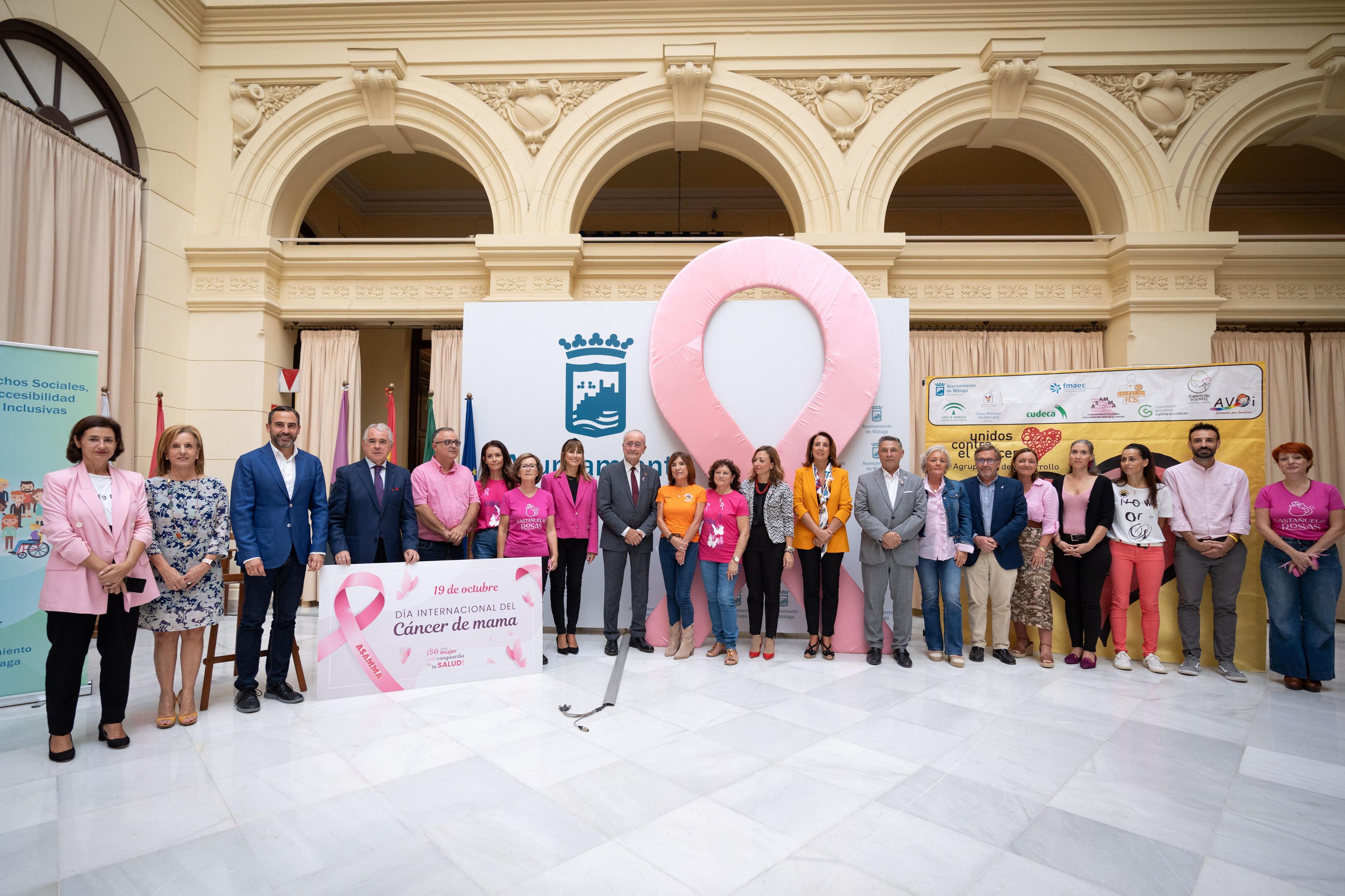 El alcalde de Málaga, Francisco de la Torre, junto a la delegada del Gobierno de la Junta de Andalucía en Málaga, Patricia Navarro, y otros ediles de la Corporación, ha asistido hoy a la lectura del manifiesto con motivo del Día Internacional de la lucha contra el Cáncer de Mama, organizado por la Agrupación de Desarrollo Unidos Contra el Cáncer, de la forma parte el Ayuntamiento a través del Área de Derechos Sociales. Además, esta entidad también la componen ASAMMA, Fundación Ronald McDonald, AVOI, FMAEC, CUDECA, AECC, Cesare Scariolo y Fundación Andrés Olivares y ASPANOMA. El acto se ha celebrado en el Patio de Banderas del Ayuntamiento.